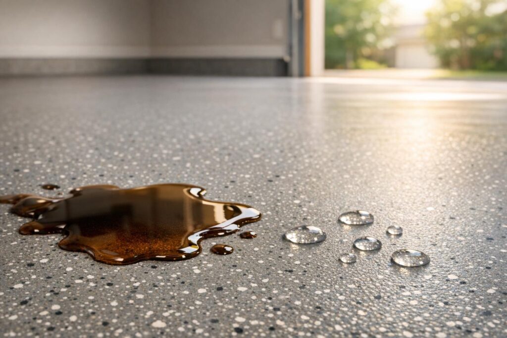 Bare concrete garage floors can be a hidden safety risk. They’re slippery when wet, absorb oil and grease, and degrade over time, creating hazardous conditions. Slip-resistant coatings solve this problem by improving grip, sealing the surface, and preventing dust and moisture buildup.